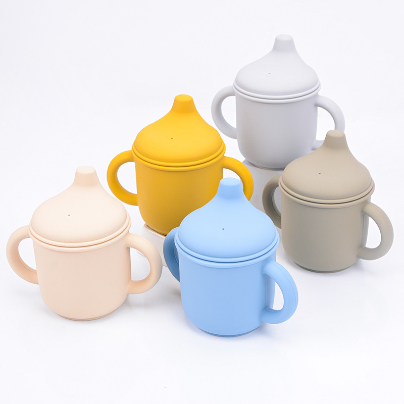 厂家直销鸭嘴杯硅胶婴儿学饮杯宝宝便携双把手水杯儿童大容量杯子