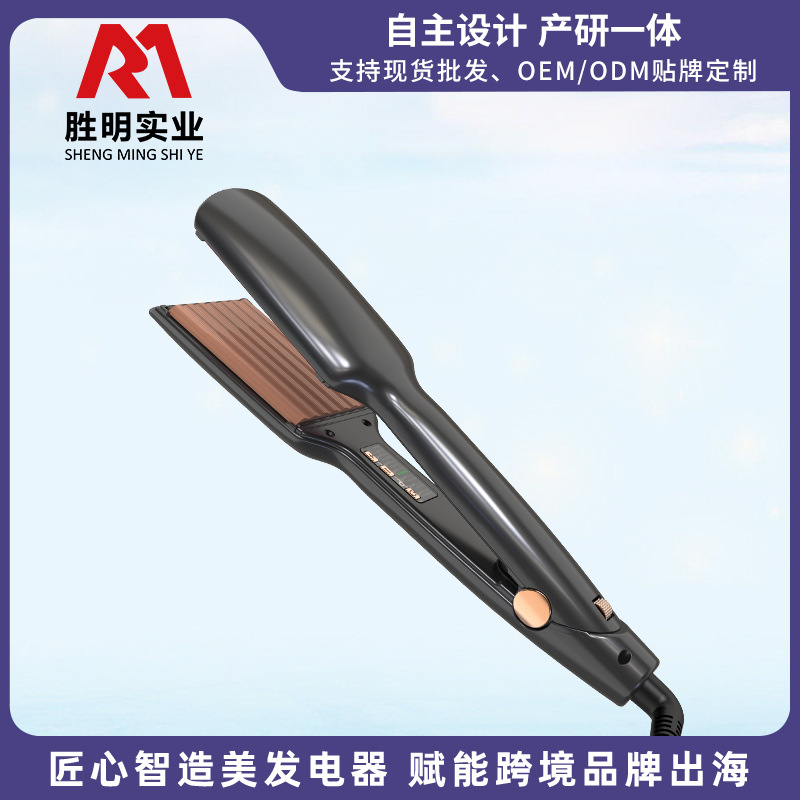 跨境新款调温蓬松格子直发器陶瓷护发干湿两用防烫蓬松直卷发器