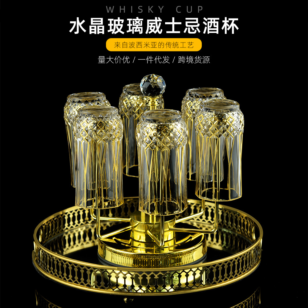 跨境描金威士忌洋酒杯高脚红酒杯酒具套装水晶玻璃白兰地酒具套装