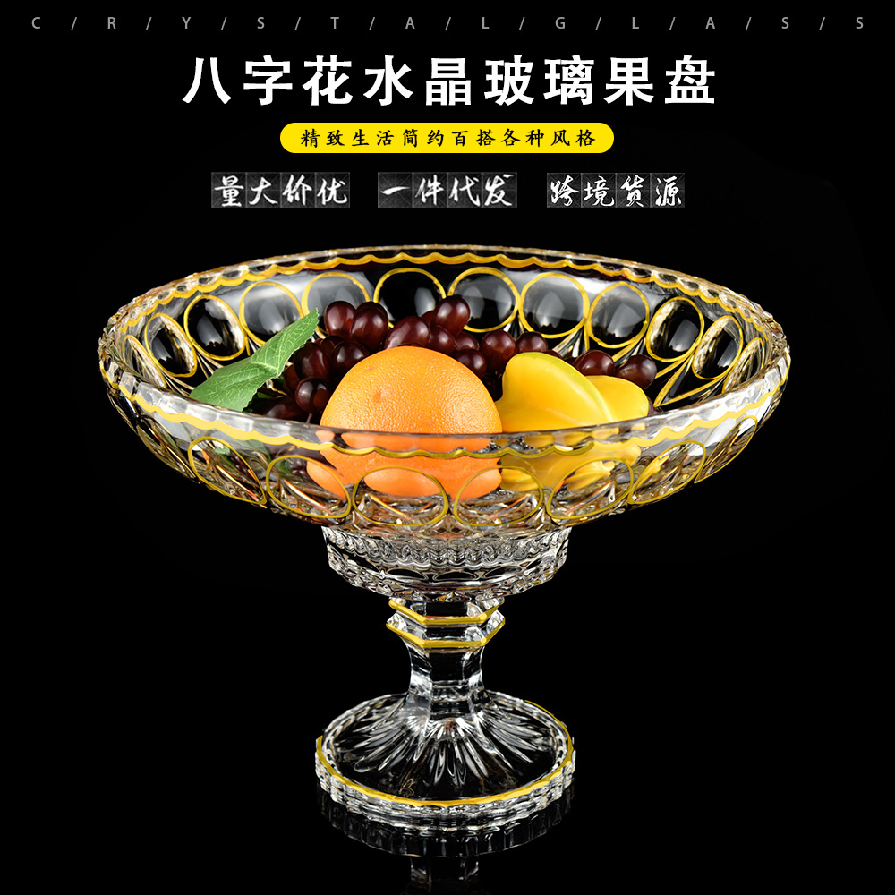 新款跨境捷克透明水晶水果盘平盘高脚果盆托盘供品盘玻璃果碗盘子