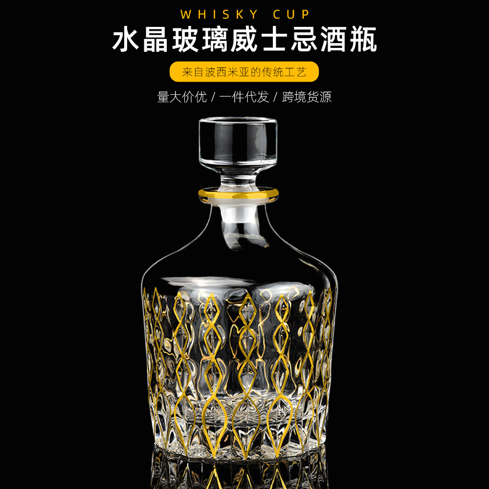 新款威士忌描金酒瓶空瓶 跨境亚马逊洋酒瓶单瓶 轻奢玻璃白兰地瓶