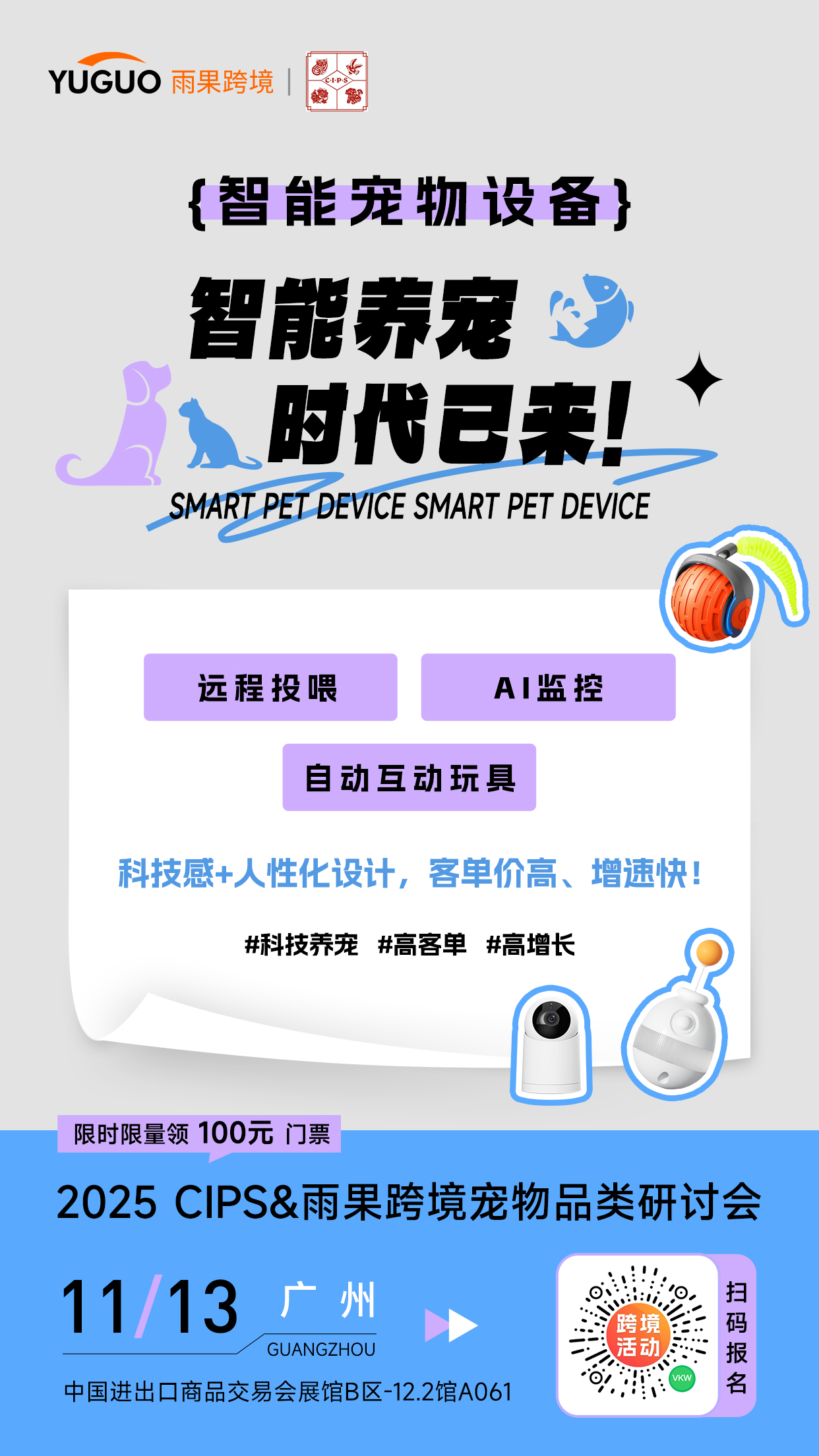 随着技术成熟与消费者认知提升,宠物可穿戴设备竞争已从功能叠加转向对用户需求的深度洞察。能够精准解决宠物安全与健康管理痛点的产品,将在这一高增长赛道赢得先机。11月13日,第二届CIPS&雨果跨境宠物品类研讨会将在广州举行,助力卖家精准捕捉宠物赛道升级机遇,点击立即报名!