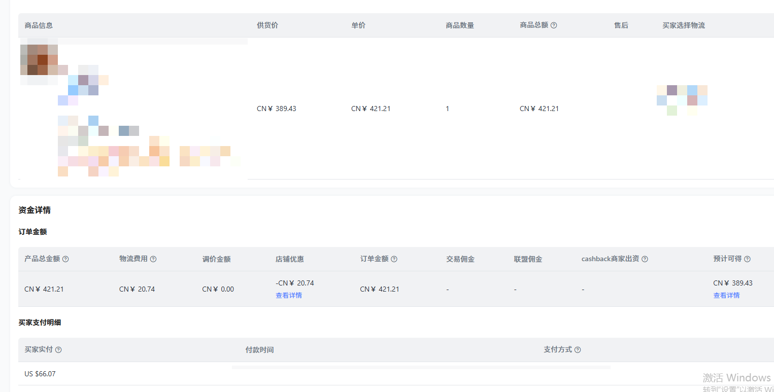 我有2个问题: 1,速卖通后台,你截图里面的产品总金额那里的上面有一个供货价和单价。供货价就是我们商家链接上写的价格。单价你这里说的意思是顾客实际支付的价格。 我的问题是,(请看我下面放的截图1)我看到有些订单 供货价>单价,这种是我们前台做了活动的吗?(请看我下面放的截图2)有些订单 单价>供货价,顾客又没多给运费,为啥还会多付钱呢? 2,预计可得(指您实际收到的金额,等于订单金额-交易佣金-联盟佣金-cashback商家出资)有时候金额和产品总金额一致,有时候又和商家供货价一致,感觉有时候又在扣钱有时候又没扣 ,看不懂啊