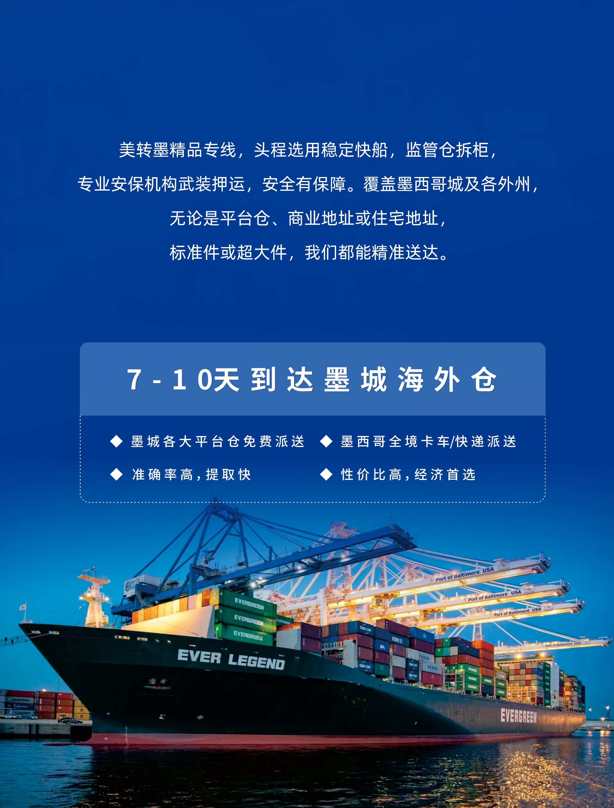 亮点 美墨精品专线直达稳定快船保障时效武装押运安全可靠覆盖墨西哥全境全地址货物精准送达