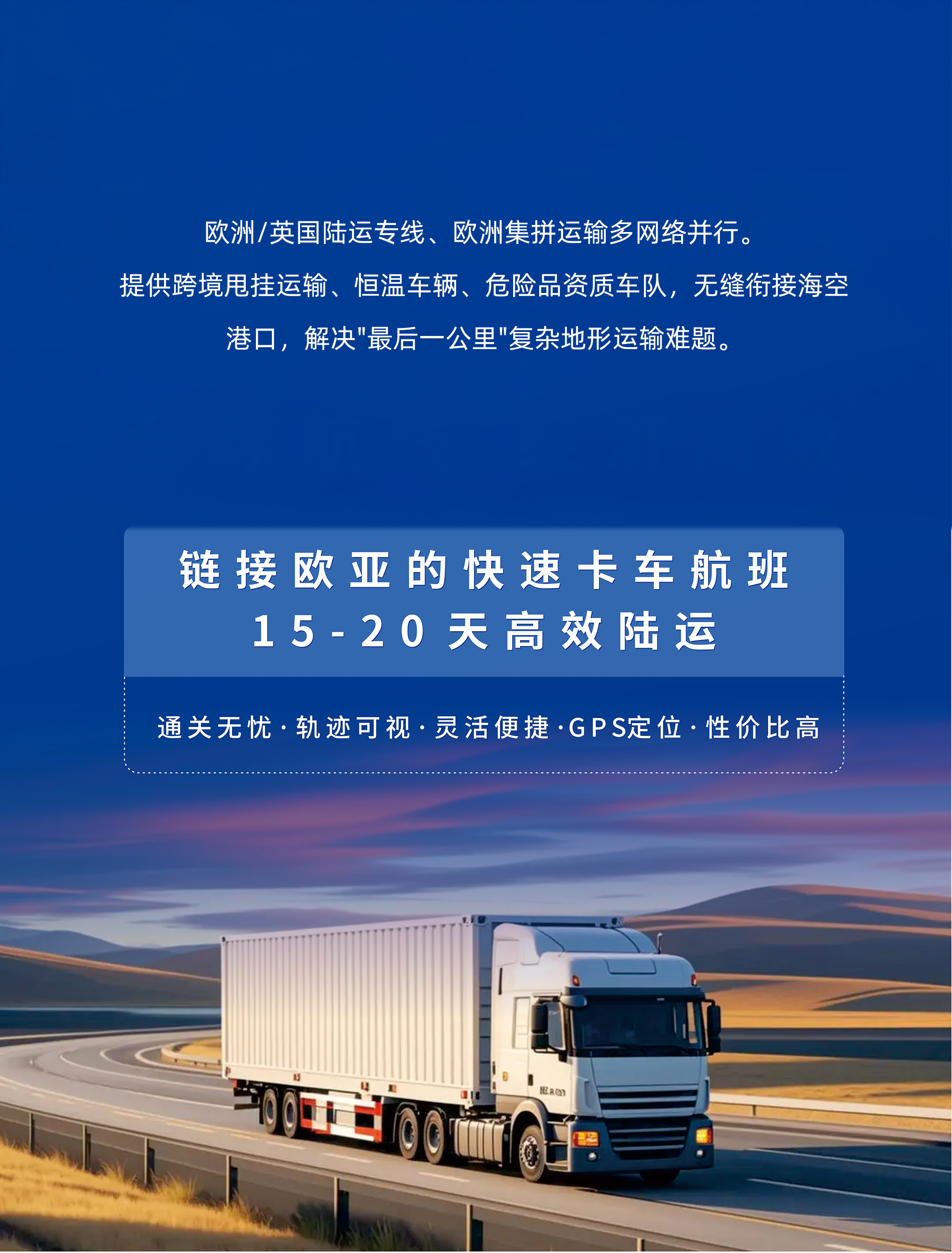 亮点 全链路可控、公路运输灵活发车、无需等待全链可视化一体化欧洲清关