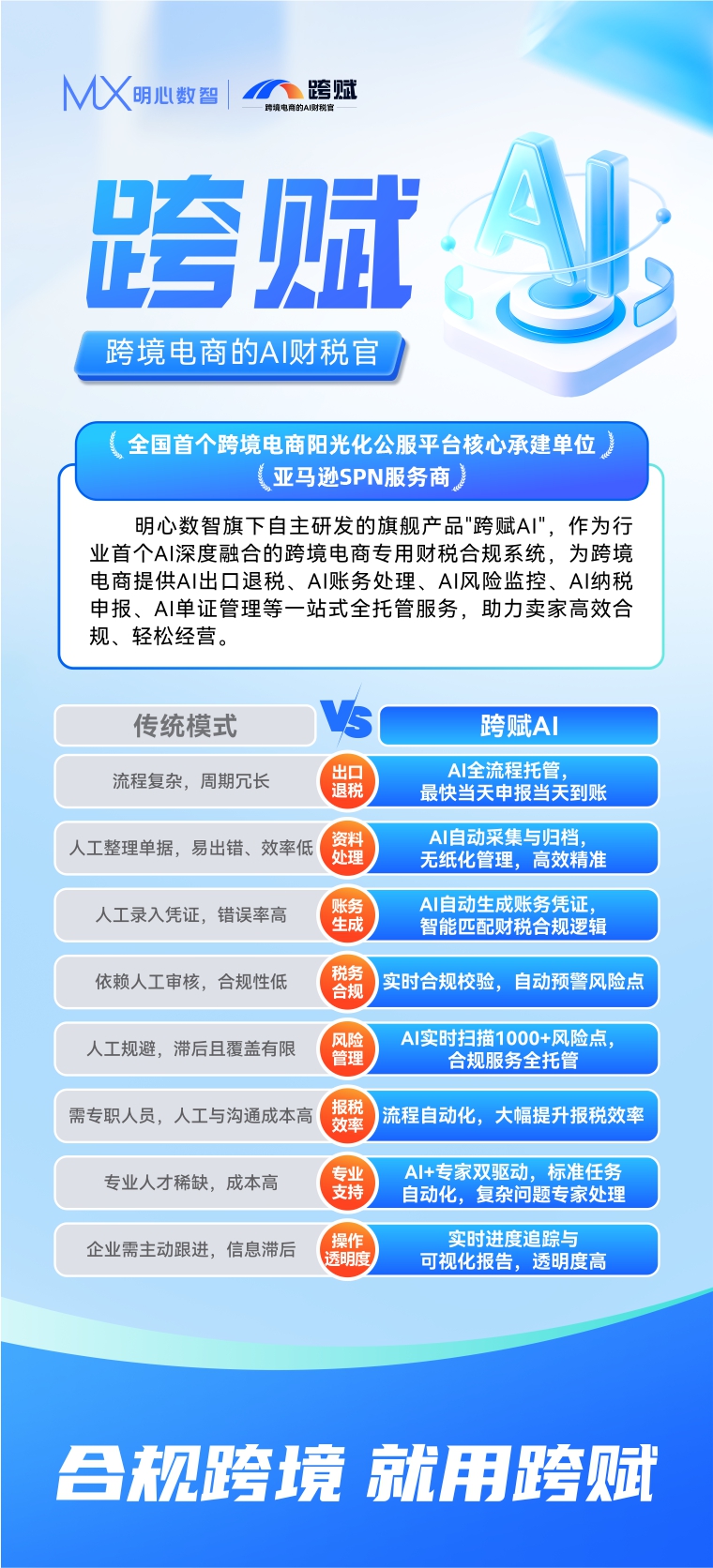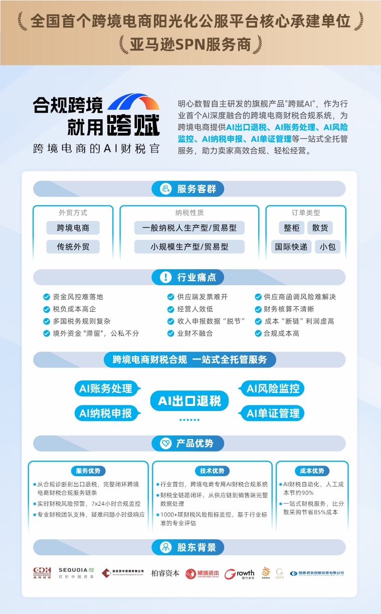 亮点 从合规诊断到出口退税,完整闭环跨境电商财税合规服务链条实时财税风险预警,7x24小时合规监控专业财税团队支持,疑难问题小时级响应行业首创,跨境电商专用AI财税合规系统一站式财税服务,比分散采购节省85%成本