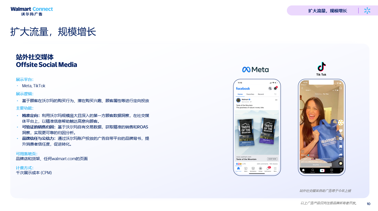 在中国,沃尔玛广告致力于为中国出海跨境电商企业创造更公平的营销环境,在当下瞬息万变的全球零售行业中突围而出;通过提供线上线下全渠道广告解决方案、独特闭环效果度量、全流程本地成长扶持及广告生态合作伙伴网络,高效助力不同发展阶段的中国跨境电商企业触达美国消费者、拓展海外市场及构筑全球品牌。